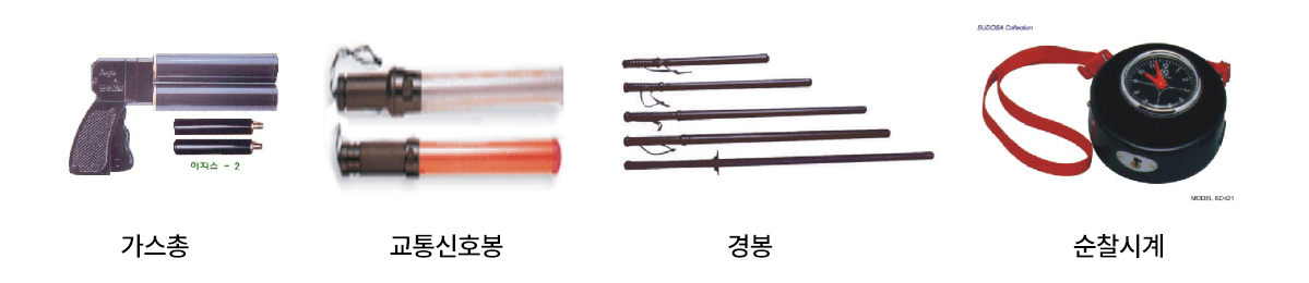 | 기타 경비장구 | 모장, 계급장, 흉장, 견장 |